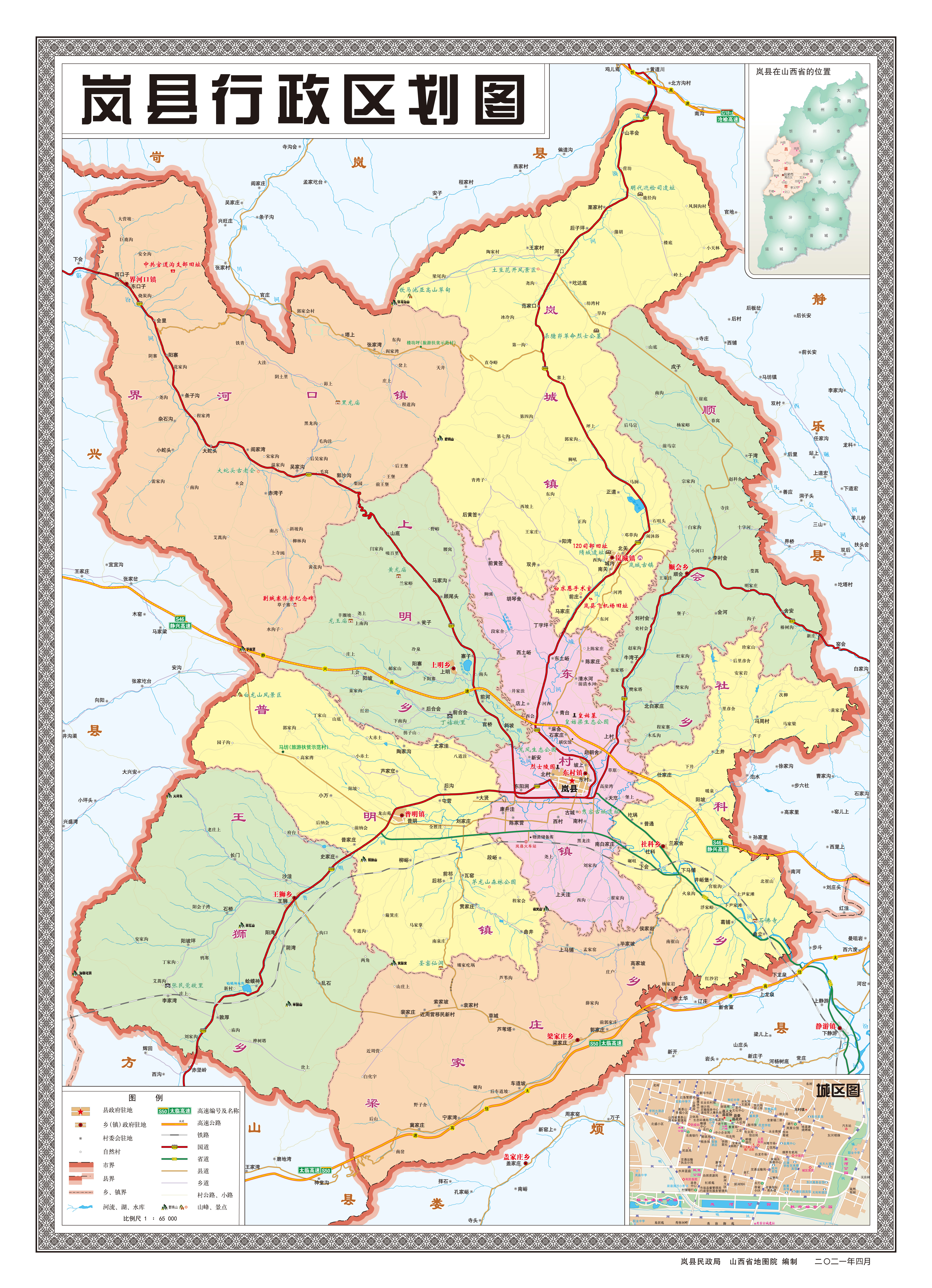 ????嵐縣位于呂梁山北端,汾河上游,北靠岢嵐,西接興縣,東鄰靜樂,南連婁煩、方山,因境內岢嵐山而得名。國土總面積1512平方公里,轄4鎮5鄉1個省級經濟開發區,戶籍人口18.7萬,常住人口14.5萬。?